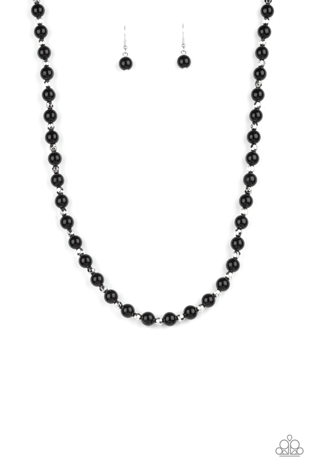 Classic black and faceted silver beads alternate along an invisible wire below the collar, creating a timeless twist. Features an adjustable clasp closure.
